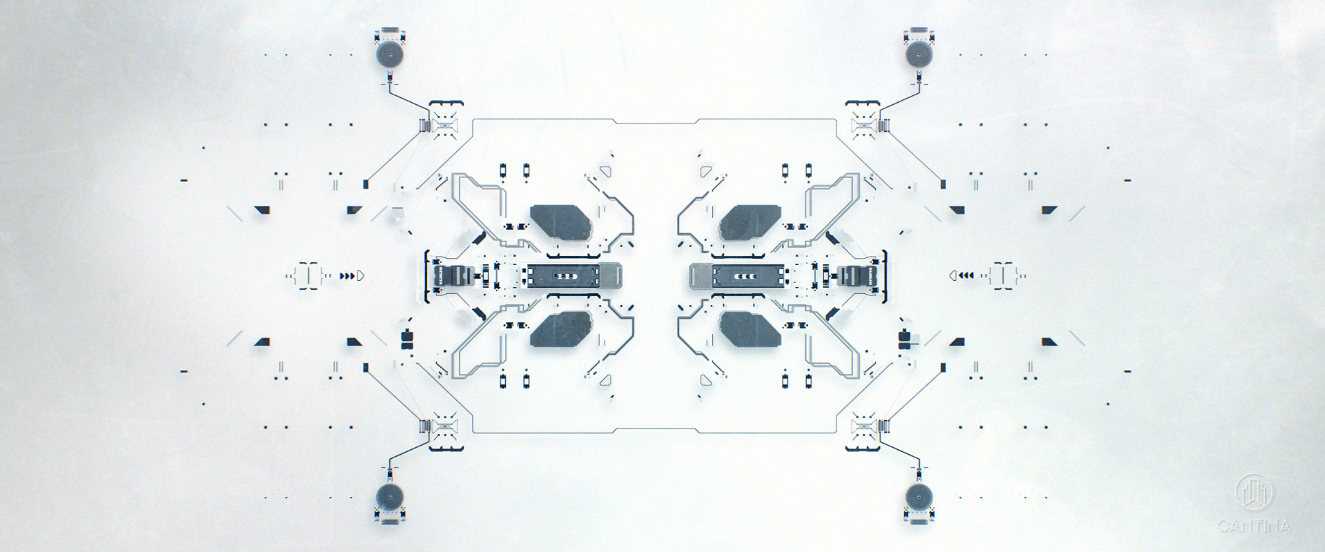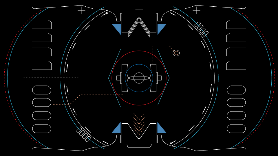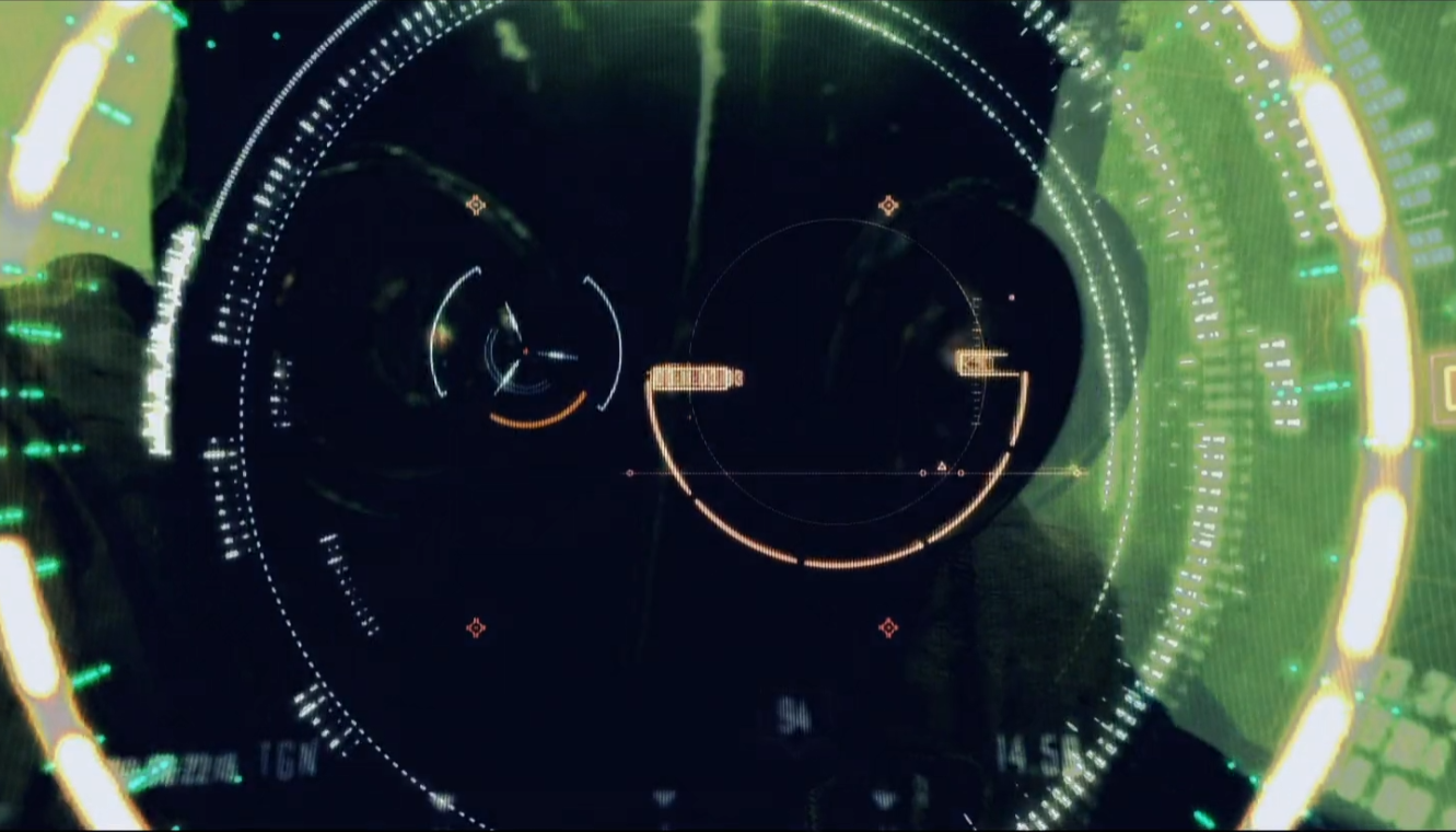 I wanted my UI to look like what the inside of a sci-fi visor or drone interface might resemble. I worked outward from the middle, as I wanted it to look like a reticle for aiming and then loads of data and menus for the pilot. After I was happy with the general look, I took it into After Effects to add some motion and flare to my basic design.